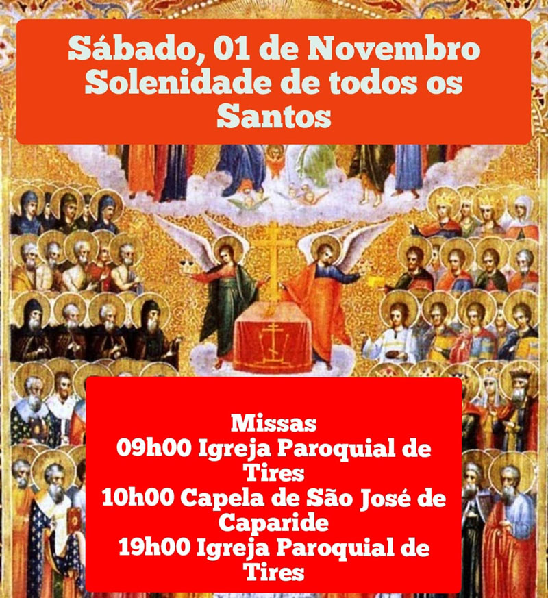 Solenidade de Todos os Santos No próximo sábado, 1 de novembro, celebramos a Solenidade de Todos os Santos. Encontra aqui os horários das celebrações.